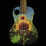 What a cool little ukulele this one is! This Amahi concert ukulele is made out of mahogany wood an features a Sunfower Field graphic on top. It also has 2 sound ports, one of the top and one on the side that projects at you as you play. This uke produces a warm tone with nice mid-range. Comes with an Amahi padded carrying bag.